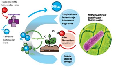 Taimes toimuvad selle kasvades ja arenedes mitmesugused protsessid, millest üks on ainevahetus. Taimerakkude kasvu ja ainevahetuse loomulik kõrvalsaadus on metanool, mis vabanedes tõmbab ligi baktereid nimega Methylobacterium. Need bakterid asuvad taimes elama ja paljunema, muundades atmosfääris oleva lämmastik N2 tõhusalt ammooniumlämmastikuks NH4+, mida taim kergesti omastab.